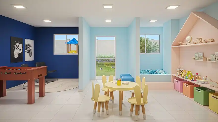O empreendimento conta com 325 unidades distribuídas em uma torre única, com áreas comuns completas e equipadas: coworking, lavanderia, minimercado, salão de festas, brinquedoteca, sala de jogos e até espaço de bricolagem para colocar projetos em prática sem sair de casa.