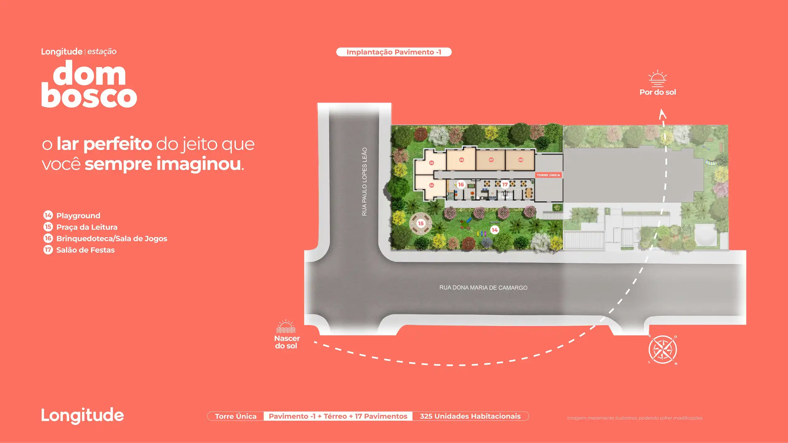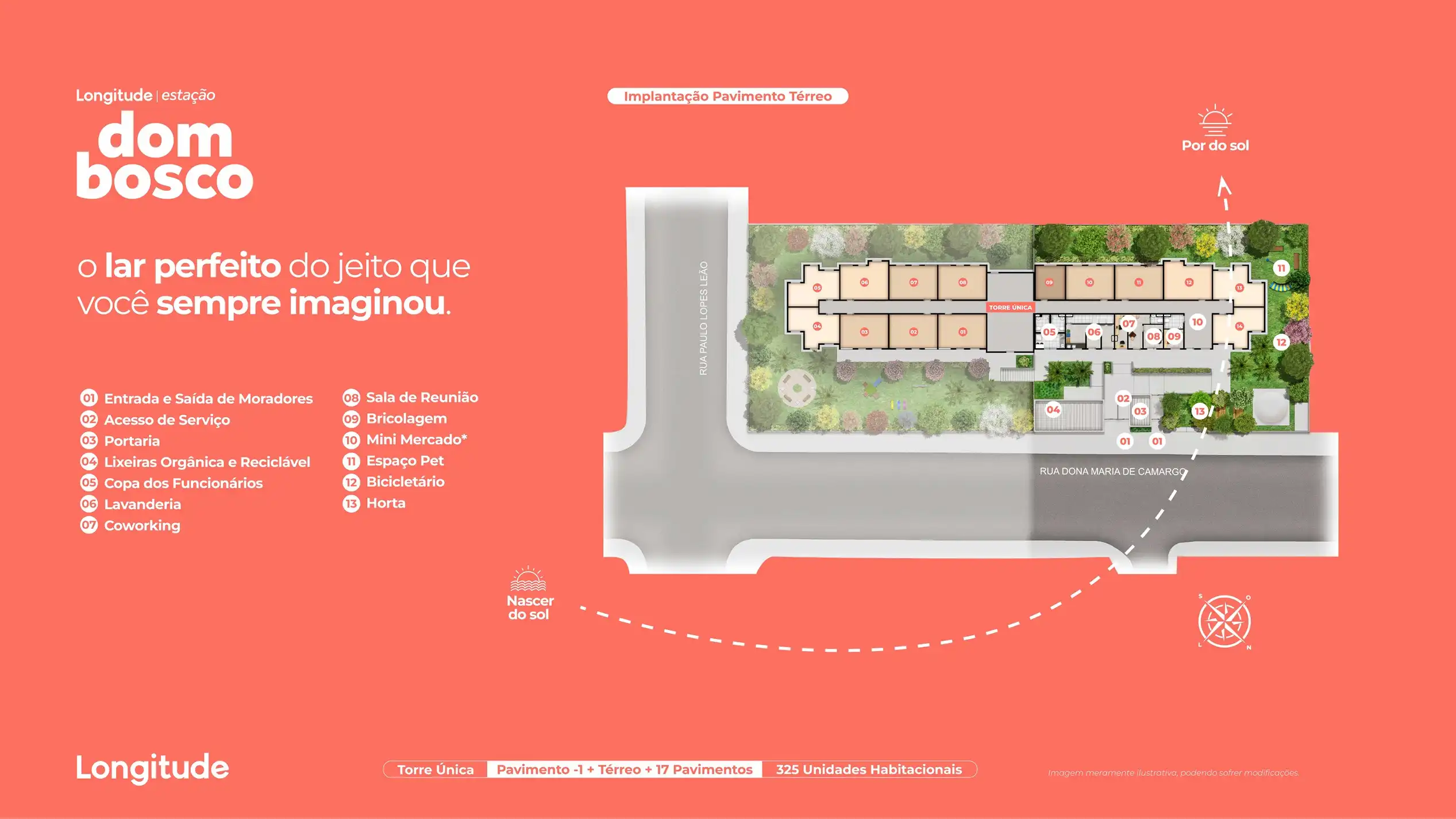 Localizado na Rua Dona Maria de Camargo, 234, o Longitude Estação Dom Bosco conecta você a tudo: transporte público, comércios, serviços e as oportunidades que só a Zona Leste oferece. É a união entre localização estratégica, plantas versáteis e um jeito novo de viver, porque seu lar pode (e deve) mudar com você.