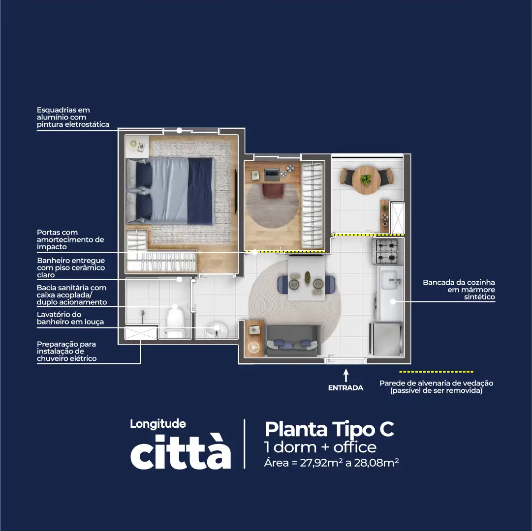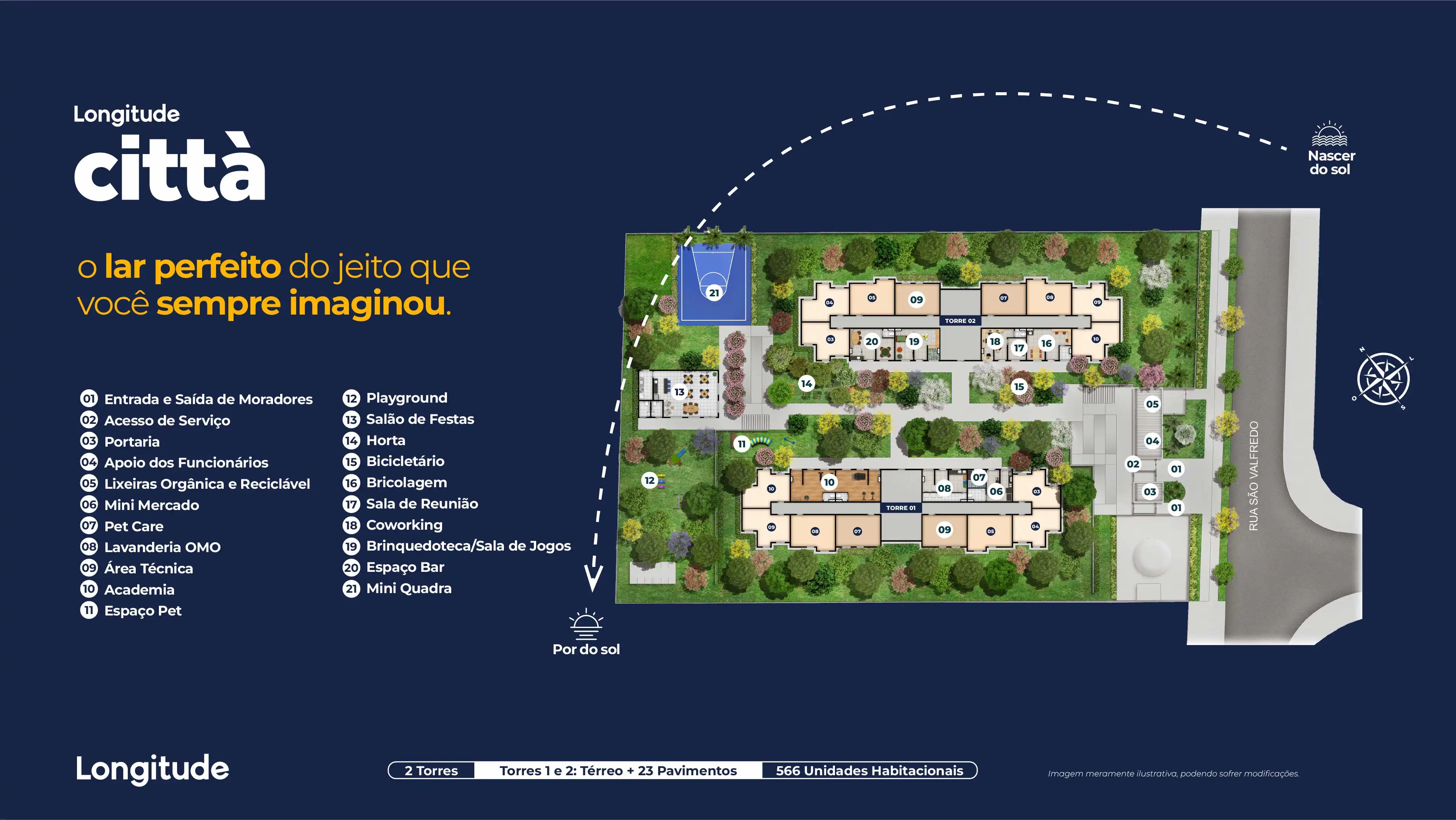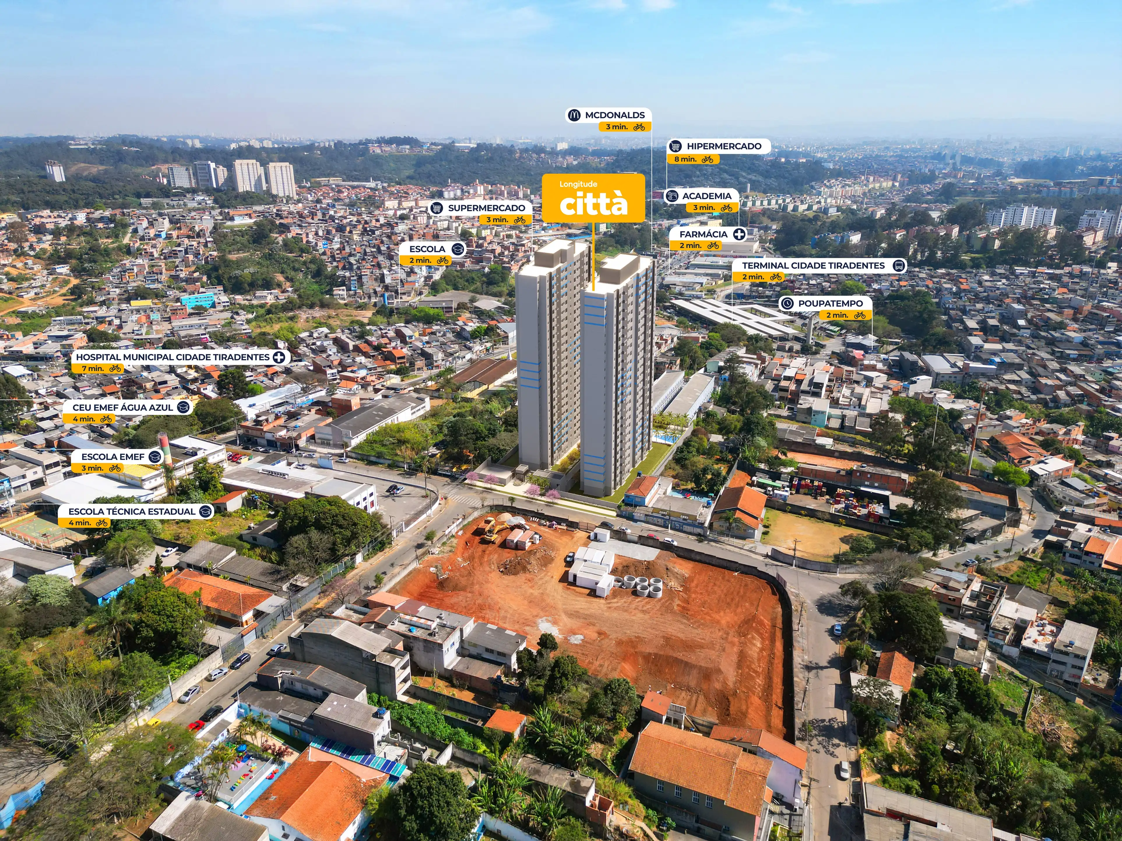 O Longitude Città é o novo lançamento na Cidade Tiradentes, na Zona Leste de São Paulo. Pensado para quem busca mais liberdade e autonomia, o Città traz um conceito inovador de planta multidorm, você escolhe como quer usar seu espaço e transforma o apartamento na extensão da sua identidade.