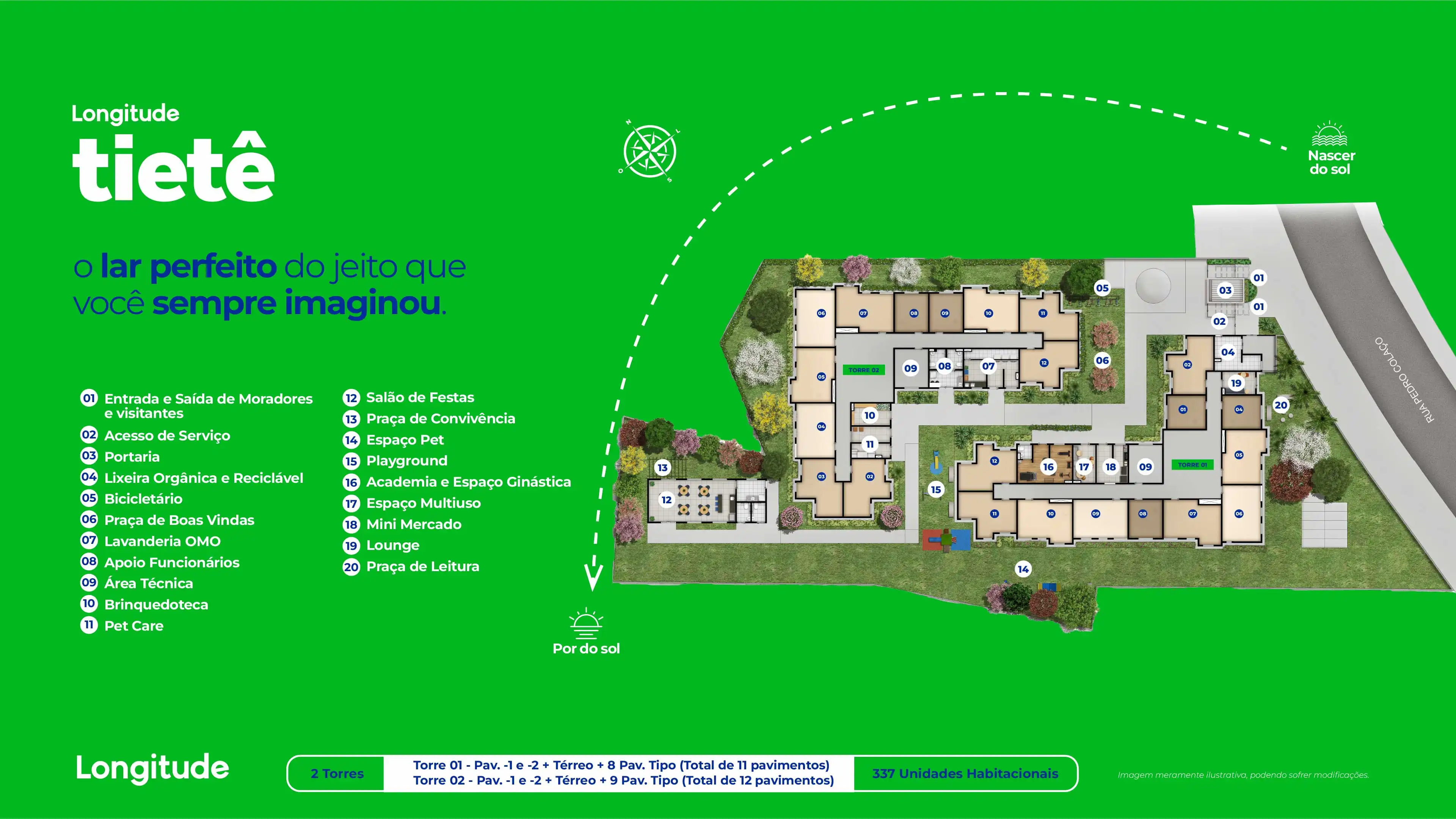 Localizado na Rua Pedro Colaço, 21, Vila Pirituba, o Longitude Tietê conecta você à praticidade de viver em uma região com comércio, serviços e mobilidade, sem abrir mão do conforto de ter seu próprio lar. É a união entre localização estratégica, plantas versáteis e um novo jeito de viver em São Paulo.